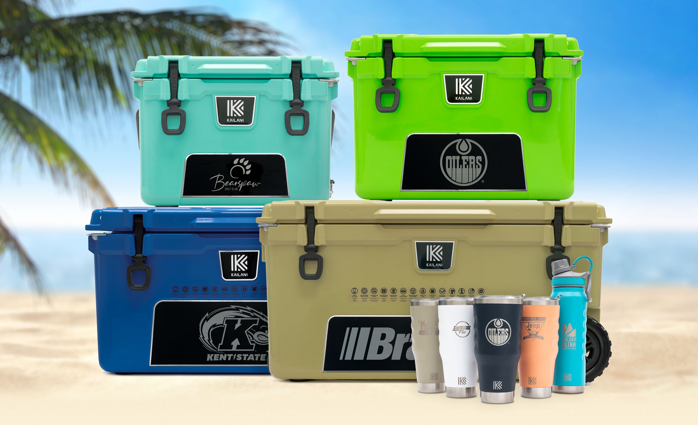 What better way to say thank-you to clients, employees, and event attendees, than with custom-branded KAILANI coolers or drinkware. Give a gift that is unique and built to last. Any one of our hard coolers, drinkware and soft coolers can easily be customized unique to your company. We are here to help you make lasting impressions.